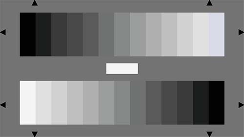 两个13度灰阶条按相反的方向排列在灰色背景(D=0.75)中,灰阶条以对数分等级。